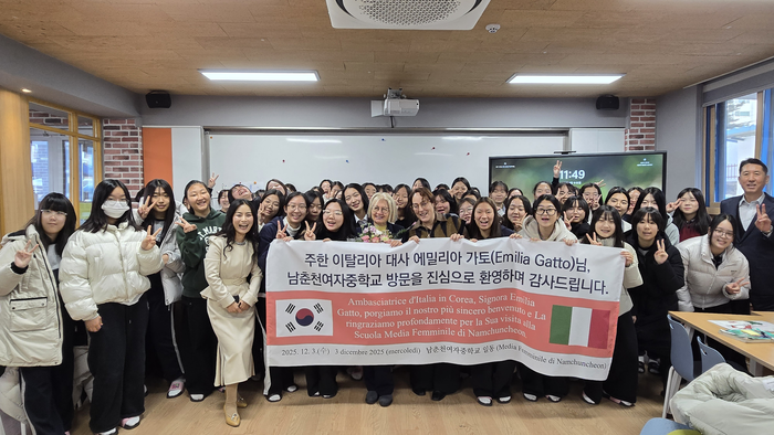 에밀리아 가토 대사는 “남춘천여자중학교 학생들의 열정과 미래에 대한 기대감을 느낄 수 있었다”며 “양국의 청소년들이 문화와 교육을 통해 더 가까워지기를 희망하며, 아름다운 도시 춘천과 이탈리아 간의 실질적인 교류 증진을 위해 노력하겠다”고 말했다.