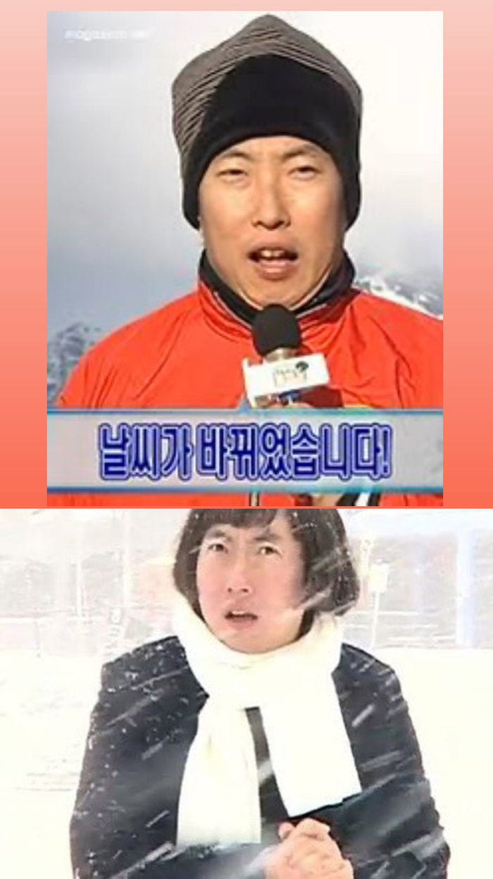 그러나 이어지는 사진에서 반전이 일어났다. 강민경은 자신의 사진 뒤에 방송인 박명수가 과거 방송에서 목도리를 두르고 추위에 떠는 듯한 이미지를 첨부했다. 스토리에도 역시 박명수가 마이크를 들고 “날씨가 바뀌었습니다”라고 말하는 이미지를 올렸다.