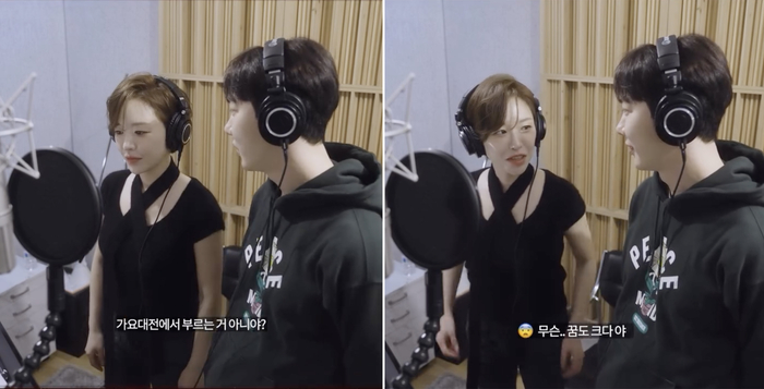 영상 속에는 다정한 모습으로 헤드폰을 착용한 채 함께 노래를 부르는 두 사람의 모습이 담겼다.