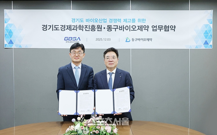 〔스포츠서울│수원=좌승훈기자〕경기도경제과학진흥원은 3일 ㈜동구바이오제약과 바이오·헬스케어 스타트업의 기술 실증과 사업화를 위한 업무협약을 체결했다.