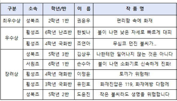 또한 최우수상 수상작은 강원소방본부 주관 예선심사에 제출될 예정이다.