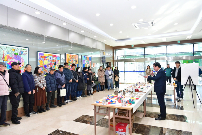 [스포츠서울ㅣ김기원기자]횡성군지적장애인자립지원센터(센터장 박태하)와 자조모임 ‘횡성스타’(회장 정종록)는 센터 개소 7주년을 맞아 2025년 제3회 자조모임 ‘횡성스타’ 미술전시회 및 제6회 작품전시회를 지난 12월 1일부터 12월 5일까지 횡성군청 로비 및 2층에서 개최했다. 오픈식은 12월 4일(목) 오전 11시, 횡성군청 로비에서 진행됐다.