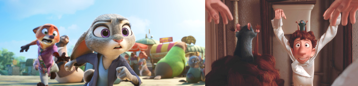 ‘주토피아’의 유서 깊은 링슬리 가문 대저택에서 펼쳐지는 짜릿한 추격전에는 디즈니 명작 '라따뚜이'를 떠올리게 하는 이스터에그가 숨어 있다. 주디와 닉이 푸른 뱀 게리를 쫓아 주방을 가로지르는 순간, 사자 요리사의 모자 안에 '라따뚜이'의 주인공 생쥐 레미가 올라앉아 있는 모습이 포착된다.