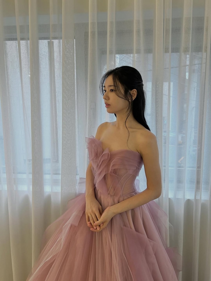 공개된 사진 속 안은진은 풍성한 튤 소재의 핑크 드레스를 입고 한층 우아해진 분위기를 뽐냈다. 어깨가 드러나는 실루엣과 자연스럽게 흘러내린 웨이브 헤어가 더해지며 고급스러운 무드를 극대화했다. 특히 체중 감량 이후 더욱 또렷해진 얼굴선과 슬림해진 바디라인이 돋보이며 시선을 사로잡는다.