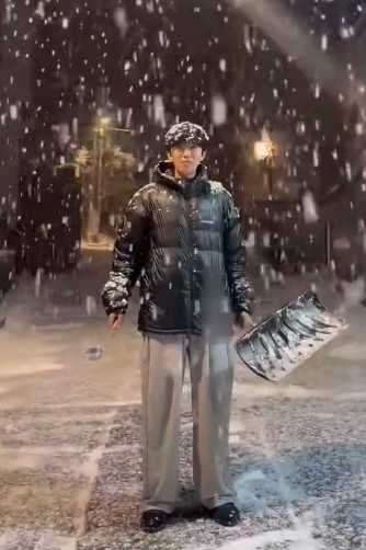 [스포츠서울 | 배우근 기자] 가수 임영웅이 폭설이 내린 겨울밤, 직접 동네 제설에 나섰다.