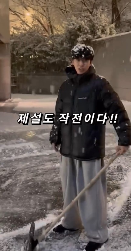 임영웅은 4일 자신의 SNS에 ‘제설작전’이라는 글과 함께 영상을 올리며 근황을 전했다. 영상 속 그는 패딩 점퍼와 트레이닝 바지를 입고 폭설이 내리는 골목으로 나와, 넉가래를 들고 눈을 치우며 제설 작업에 열중이다.