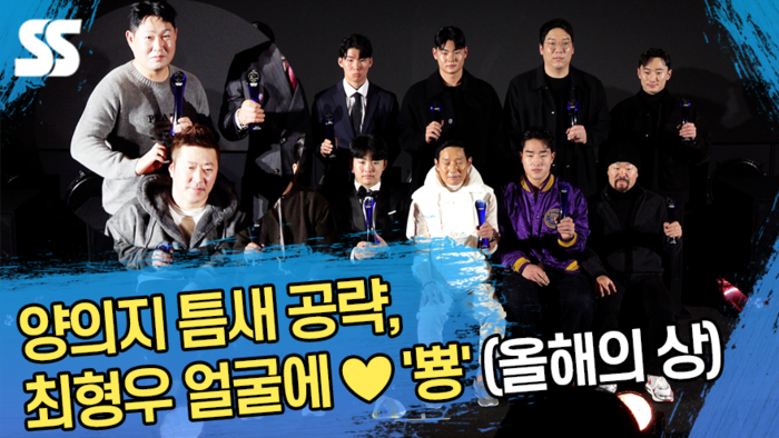 올해의 투수상을 받은 삼성 라이온즈 원태인부터 올해의 신인상 KT 위즈 안현민까지 모든 수상자들이 한 자리에 모여 뜻깊은 기념 사진을 남겼다. 코디 폰세는 미국 체류 중으로 시상식에 불참했다.