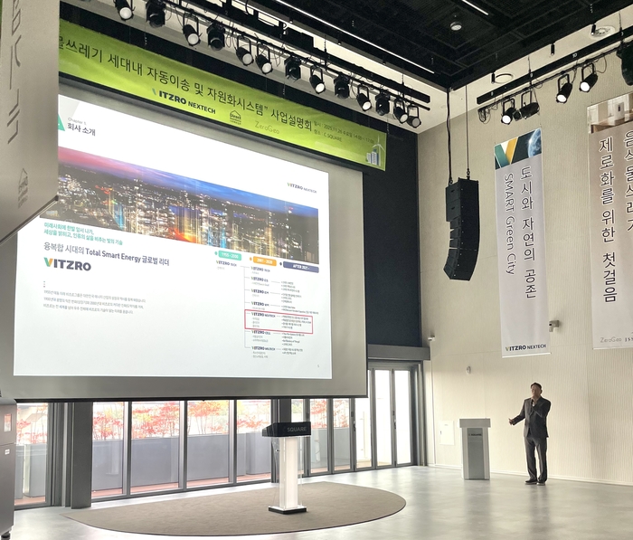 비츠로넥스텍은 지난달 26일 서울 강남 씨스퀘어에서 재건축·재개발 조합, 시공사, 설계사 등 100여 명이 참석한 가운데 ‘음식물쓰레기 세대내 자동이송 및 자원화시스템’ 사업설명회를 성황리에 마쳤다. 이번 발표는 비츠로넥스텍이 코스닥 상장 이후 처음 공개한 대규모 신사업이다.