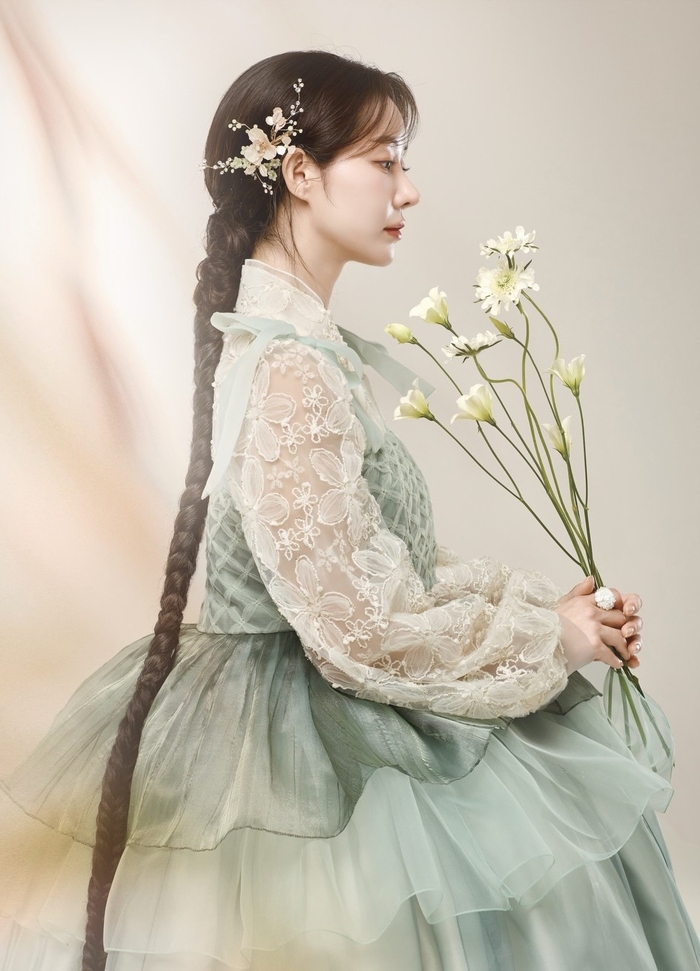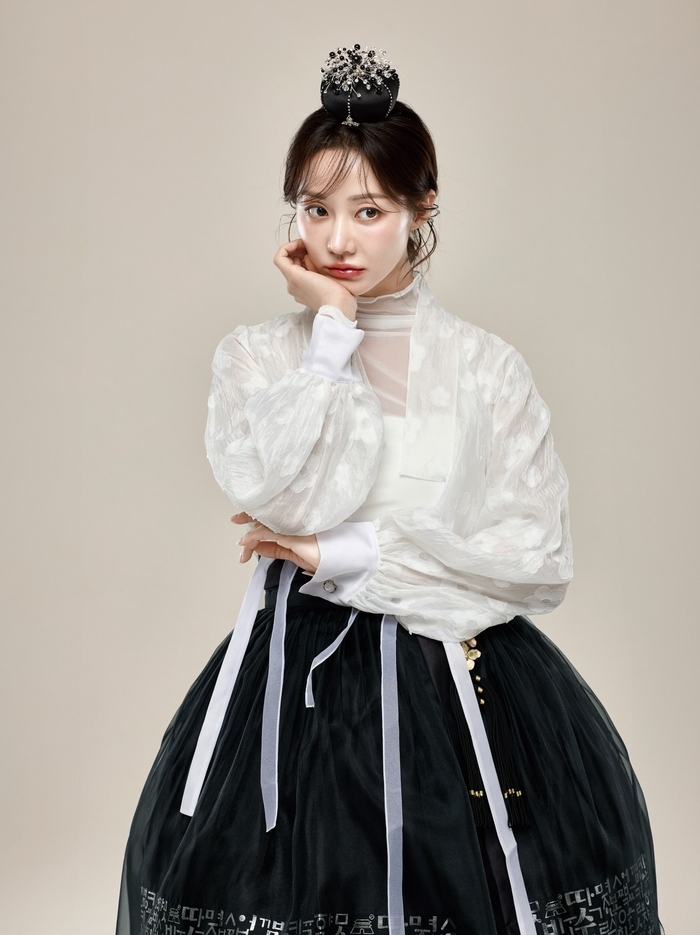 특히 검은색 레이스 저고리와 시스루 치마를 매치한 의상에서는 시크하면서도 고혹적인 매력을 드러냈으며, 푸른색 쓰개치마를 활용한 컷에서는 신비로운 분위기를 연출했다. 파스텔 톤의 옥색 한복을 입고 꽃을 든 채 어딘가를 응시하는 모습에서는 특유의 청초하고 단아한 매력이 돋보인다.