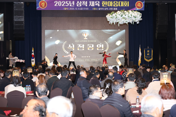 [스포츠서울ㅣ김기원기자]5일 삼척 쏠비치에서 삼척 체육인이 한자리에 모여 2025년 체육발전에 힘쓴 체육인을 격려하고 성과를 공유하는 2025 삼척 체육 한마음대회가 열렸다.