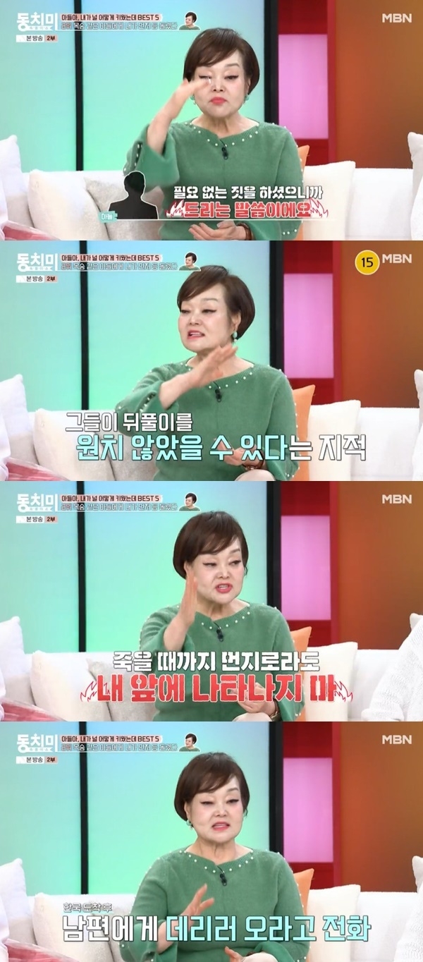 이혜정은 “제가 (아들) 멱살을 잡았다”라며 “내 앞에 죽을 때까지 먼지로라도 나타나지 마”라고 절연선언을 전했다.