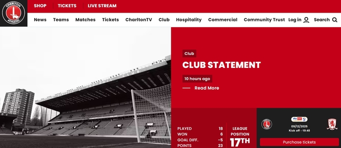1시간 뒤 경기가 취소됐다. 찰턴 구단은 ‘더밸리에서 열린 포츠머스와 경기에서 서포터 한 명이 응급 상황으로 사망했다는 소식을 전하게 돼 깊은 슬픔에 잠겼다’고 발표했다.