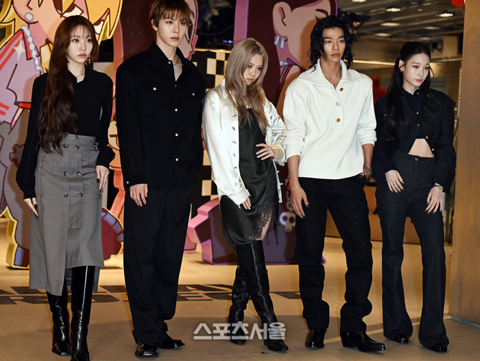 [스포츠서울 글·사진 | 이주상 기자]혼성그룹 올데이프로젝트(ALLDAY PROJECT/영서, 우찬, 베일리, 타잔, 애니(왼쪽부터))가 8일 서울 성동구 에이스팩토리에서 열린 ALLDAY PROJECT 1st EP ‘ALLDAY PROJECT’ 발매 기념 팝업 스토어 오픈 행사에 참석해 포토월을 소화하고 있다.