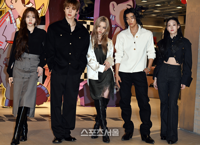 [스포츠서울 글·사진 | 이주상 기자] 혼성그룹 올데이프로젝트(ALLDAY PROJECT/영서, 우찬, 베일리, 타잔, 애니(왼쪽부터))가 8일 서울 성동구 에이스팩토리에서 열린 ALLDAY PROJECT 1st EP ‘ALLDAY PROJECT’ 발매 기념 팝업 스토어 오픈 행사에 참석해 포토월을 소화하고 있다.