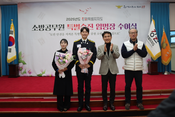 특별승진 임명장 수여식은 12월 3일(수) 10시 50분, 강원특별자치도청 신관 2층 대회의실에서 개최되었으며, 강원특별자치도지사가 직접 임명장을 전수했다. 행사에는 소방본부장, 소방본부 과장, 특별승진 임명자와 가족 및 동료들이 참석해 자리를 빛냈다.