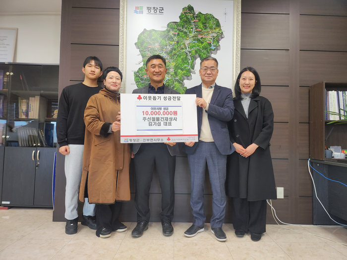 [스포츠서울ㅣ김기원기자]평창군 진부면 주신철물건재상사(대표 김기섭)는 8일 지역의 어려운 이웃을 위해 성금 1,000만원을 진부면사무소에 기탁하며 따뜻한 나눔을 실천했다.