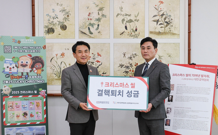 [스포츠서울ㅣ춘천=김기원기자]강원특별자치도(도지사 김진태)는 12월 8일, 도청 통상상담실에서 대한결핵협회 강원특별자치도지부(지회장 한중일)로부터 크리스마스 씰을 증정받고 특별성금 300만원을 전달했다고 밝혔다.