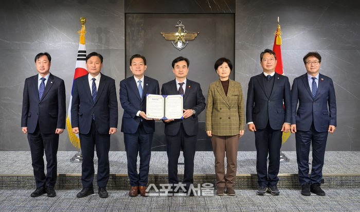 〔스포츠서울│수원=좌승훈기자〕이재준 수원특례시장과 백혜련(수원시을)·김영진(수원시병)·김승원(수원시갑)·염태영(수원시무)·김준혁(수원시정) 의원 등 수원 국회의원 5명은 국방부를 방문해 안규백 국방부장관과 면담하고, ‘수원 군 공항 이전의 국가전략 사업화를 위한 공동 건의문’을 전달했다.