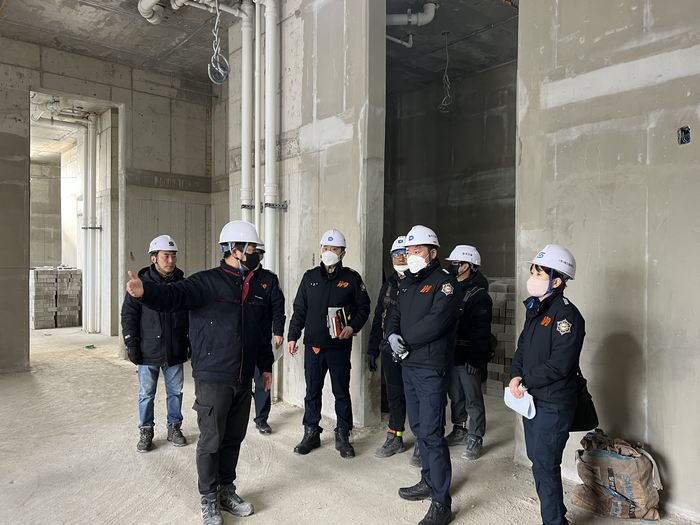 이날 이강우 서장을 비롯한 소방서 관계자 5명은 현장을 직접 점검하며 ▲공사현장 안전관리 체계 및 소방시설 시공 품질 확인 ▲책임 시공(발주)자 및 현장소장 대상 화재안전 컨설팅 ▲화재 등 긴급상황 발생 시 대처 및 피난방안 마련을 위한 지도 등을 실시했다.