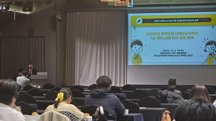 [스포츠서울ㅣ원주=김기원기자]강원특별자치도 원주교육지원청(교육장 김성진)은 12월 9일(화) 호텔인터불고 원주에서 ‘2025년 지역중심 디지털 교육혁신 1교 1선도교사 연수 성과 나눔회’를 개최했다.