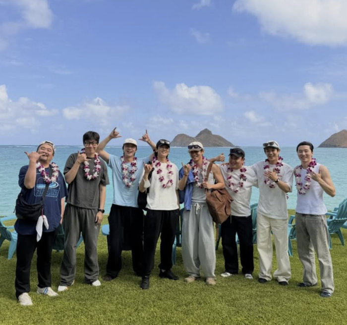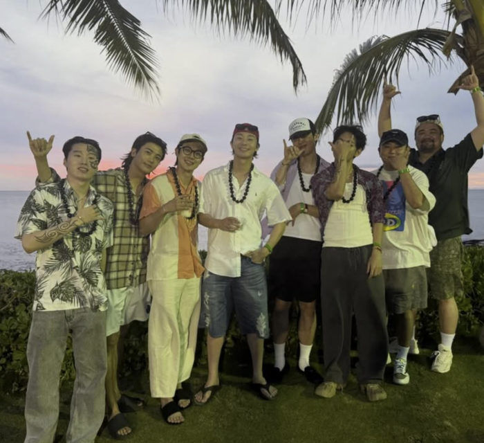 뷔는 9일 자신의 SNS에 멘트 없이 여러 장의 사진을 공개했다. 뷔가 공개한 사진에는 배우 박서준, 최우식, 박형식, 가수 픽보이 등 뷔의 절친 모임 ‘우가팸’ 완전체가 모여 하와이 여행을 즐기고 있는 모습이다.