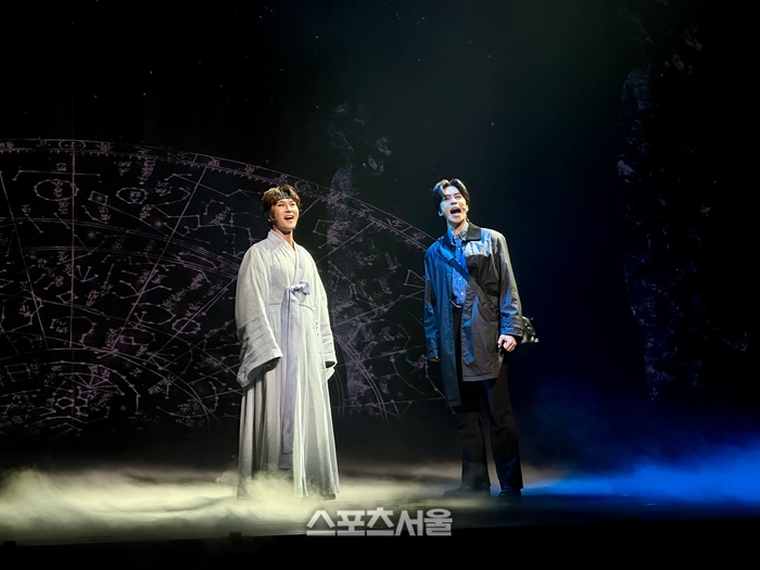박은태와 신성록은 9일 서울 중구 충무아트센터 대극장에서 진행된 뮤지컬 ‘한복 입은 남자’ 프레스콜에서 ‘비차’를 비롯해 다양한 넘버에 등장하는 ‘별’에 대한 각자의 생각을 전했다.