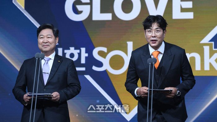 스포츠 | 야구 [포토] 투수, 포수 부문 시상자 이만수-정민철 입력2025-12-09 18:05:00 북마크 페이스북 트위터 SNS 더보기 가글자크기설정 인쇄 SNS 더보기 닫기 네이버밴드 네이버블로그 URL복사 글자크기 설정 메뉴 닫기 글자크기 설정 시 다른 기사의 본문도동일하게 적용됩니다. 가 가 가 가 가 이만수와 정민철이 9일 서울 송파 롯데호텔 월드에서 열린 2025 KBO 골든글러브 시상식에서 인사말을 하고 있다.2025. 12. 9.최승섭기자 thunder@sportsseoul.com 기사추천 0