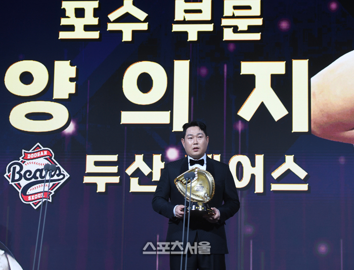 양의지는 9일 롯데호텔월드에서 열린 2025 KBO 골든글러브 시상식에서 포수 부문 황금 장갑을 거머쥐었다.