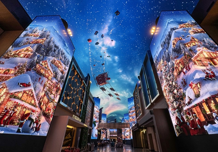 스토리는 이어진다. 곰들이 정성껏 만든 선물은 매시 30분, 열기구를 타고 150m 길이의 디지털 거리 ‘오로라’로 배달된다. 천장을 가득 채운 초대형 LED 스크린에 ‘산타 빌리지’가 펼쳐지고, 황금빛 썰매가 머리 위를 가로지른다. 이 압도적인 비주얼 앞에서는 남녀노소 할 것 없이 모두가 발걸음을 멈추고 하늘을 올려다본다. 스마트폰을 꺼내 이 마법 같은 순간을 담느라 여념이 없는 사람들의 표정엔, 잠시나마 현실을 잊은 아이 같은 설렘이 서려 있다.