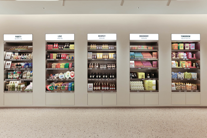지상 1층은 현대인의 취향을 세심하게 큐레이션하는 공간으로 꾸며졌다. 남성 라이프스타일 브랜드 ‘맨온더분’, 여성복 ‘자아’, 국내 최초 화이트 리쿼 전문매장 ‘클리어’, 7석 프라이빗 가이세키 레스토랑 ‘모노로그’, 모던 일식 ‘호무랑’ 등 패션·주류·다이닝을 한데 모아 완성도 높은 취향형 공간으로 구성됐다.