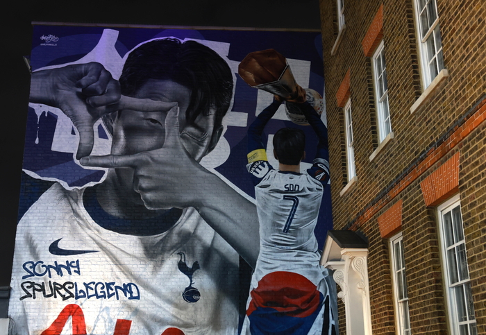 토트넘은 4개월 여 만에 돌아온 손흥민을 반갑게 맞았다. 경기장 앞에는 벽화가 만들어졌다. 손흥민의 시그니처 ‘찰칵 세리머니’와 유로파리그에서 우승 트로피를 들어올리는 장면이다.