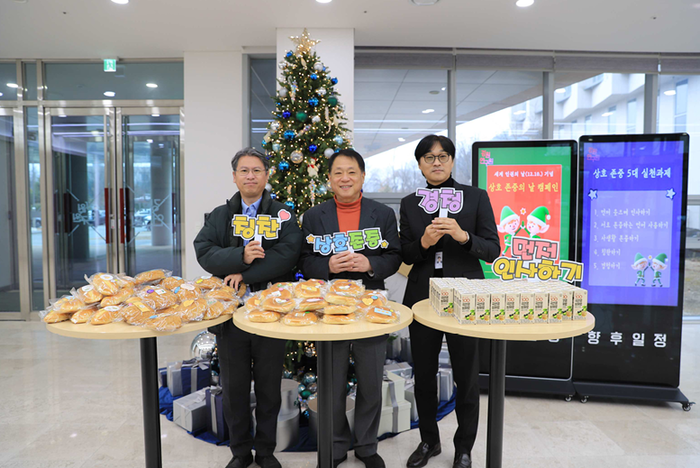이날 캠페인에는 원장이 직접 참여하여 직원들에게 빵과 두유를 건네며 “존중은 인사로부터 시작된다”는 메시지를 전하고 구성원 간 따뜻한 인사와 격려가 이어지는 조직문화 조성을 당부했다.
