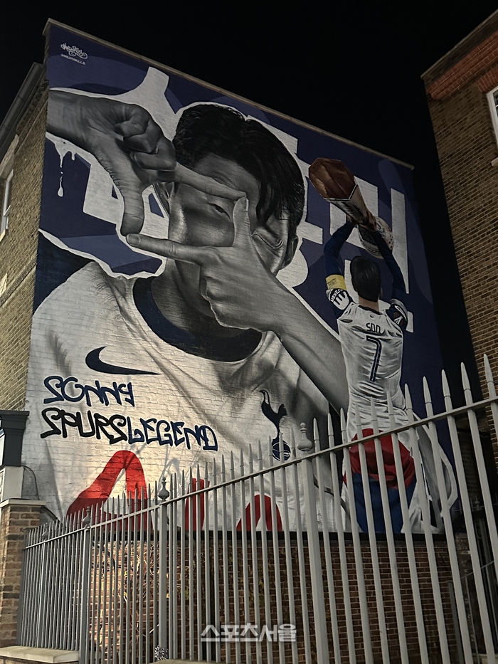 손흥민은 “내가 선수들을 바라보며 트로피를 들고 있고, 뒤에는 폭죽이 터져있고, 태극기를 허리에 맸고, 내가 좋아하는 장면이 모두 포함돼 있다”며 싱글벙글했다. 벽화에 ‘LEGEND’라는 문구도 새겨졌다.