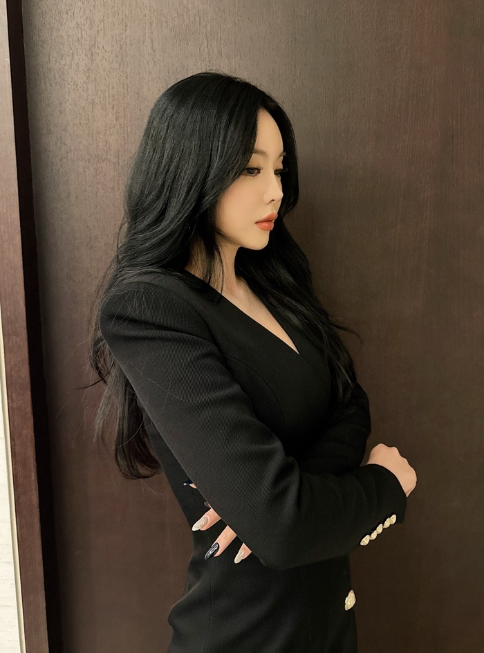 공개된 사진 속 홍진영은 과감한 스타일링으로 시선을 사로잡았다. 가슴 라인이 깊게 파인 블랙 재킷 형태의 원피스를 착용한 그는 숨겨둔 글래머러스한 몸매를 가감 없이 드러냈다. 몸에 밀착되는 의상은 그녀의 굴곡진 S라인을 더욱 돋보이게 했다.
