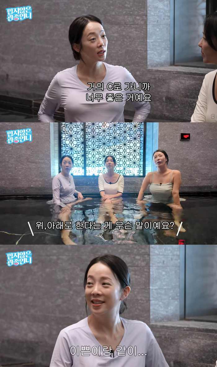 이날 사우나에서 편안한 분위기로 대화를 나누던 중 박은영은 임신의 신체적 변화에 대해 만족감을 드러냈다. 그는 “임신을 하니 가슴이 커진다”라며 “꽉 찬 B컵을 넘어 거의 C컵으로 가니까 너무 좋다”라고 솔직하게 고백해 현장을 웃음바다로 만들었다.