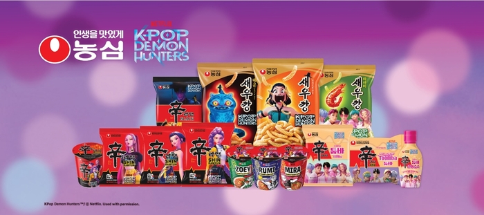 농심은 지난 8월, 식품업계 최초로 넷플릭스와 협업을 통해 신라면·새우깡 등의 패키지에 애니메이션 영화 ‘케이팝 데몬 헌터스’ 캐릭터 디자인을 적용했다. 특히, 헌트릭스, 사자보이즈, 더피 등 영화 속 캐릭터를 신라면과 새우깡, 신라면 툼바 만능소스의 제품 특징과 연결한 디자인 기획으로, 출시 직후 글로벌 소비자들의 이목을 집중시켰다.