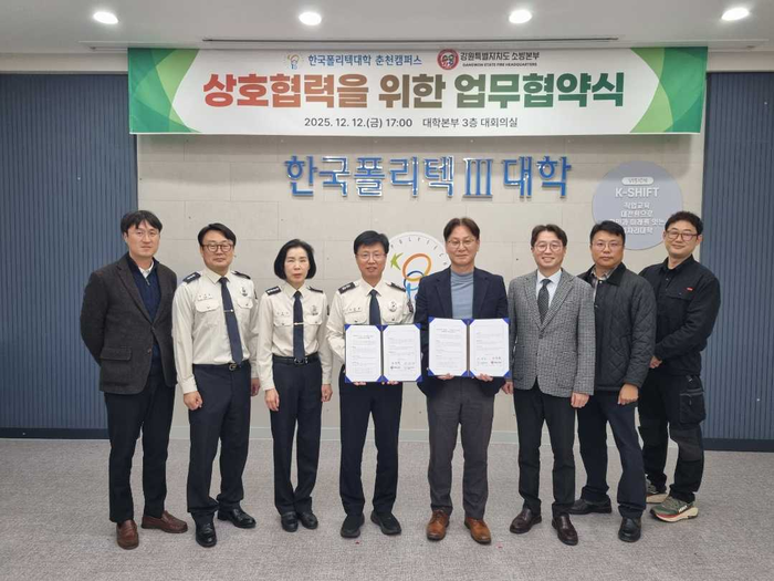 이번 협약은 지역사회 안전문화 확산과 현장 중심의 실무형 인재 양성을 위해 양 기관이 긴밀히 협력할 필요성에 공감하면서 추진되었으며, 협약식은 폴리텍대학 춘천캠퍼스 대회의실에서 진행됐다.