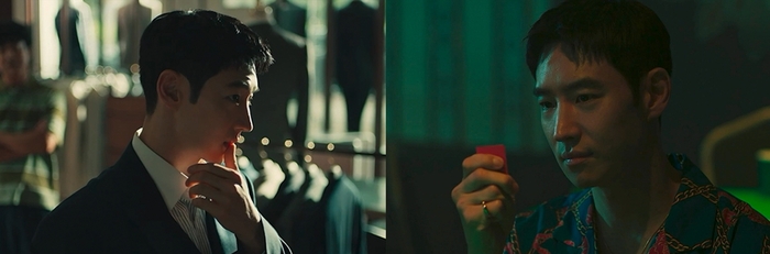 이번 회차에서 이제훈은 다양한 부캐를 전략적으로 활용해 빌런을 들었다 놨다 하는 완벽한 심리전을 펼쳐 시청자들의 시선을 집중시켰다. 그는 빌런을 제압하기 위한 부캐로 ‘타짜 도기’와 ‘로렌조 도기’, 두 가지 위장 설계를 앞세워 상대의 불안한 감정을 적극 활용하며 서사를 주도하는 한편, 몰아치는 압박을 가한 카 체이싱 시퀀스에서는 날것 그대로의 집중력과 리듬을 활용한 액션으로 장면의 에너지를 폭발시켰다.