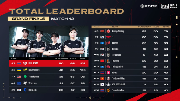 이후 경기에서 풀센스가 점수 차이를 벌리면서 선두 자리를 굳게 지켰다. T1은 좀처럼 차이를 좁히지 못했다. 이때 치고 올라온 팀이 DNF다. 매치10에서 교전력을 발휘하면서 마지막까지 살아남았다. 아쉽게 치킨을 놓쳤지만, 상위권을 노릴 수 있는 위치까지 올라왔다.