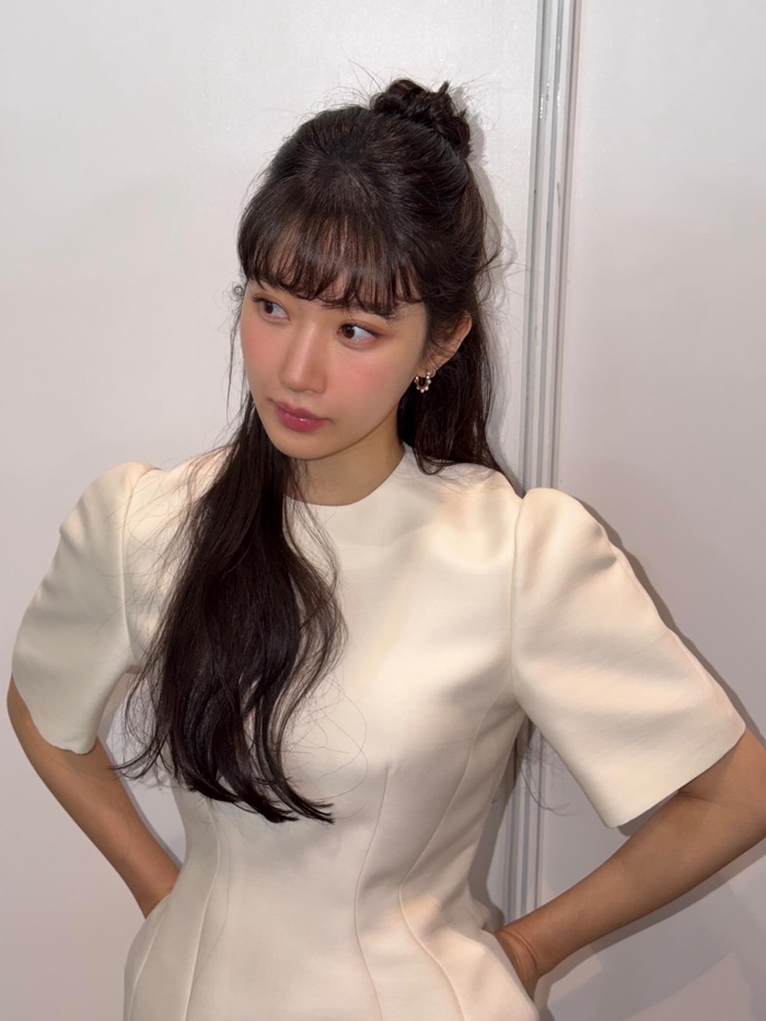공개된 사진 속 문가영은 어깨 라인이 돋보이는 심플한 화이트 미니 드레스를 입고 청순하면서도 생기 넘치는 분위기를 자아냈다. 반으로 묶어 올린 헤어스타일은 그녀의 상큼한 에너지를 더욱 돋보이게 했다.