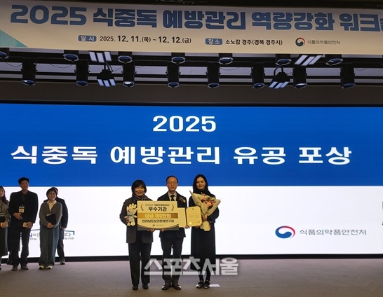 [스포츠서울┃조광태 기자] 전라남도보건환경연구원이 식품의약품안전처의 ‘2025년도 식중독 예방관리 사업’ 평가에서 우수기관에 선정돼 식품의약품안전처장 기관표창을 받았다.