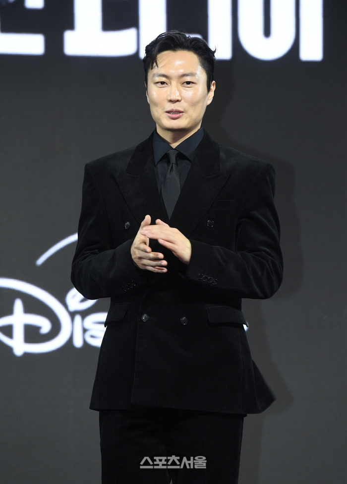 배우 노재원이 15일 서울 강남구 그랜드 인터컨티넨탈 파르나르에서 진행된 디즈니+ 오리지널 시리즈 ‘메이드 인 코리아’ 제작발표회에서 취재진을 향해 포즈를 취하고 있다.