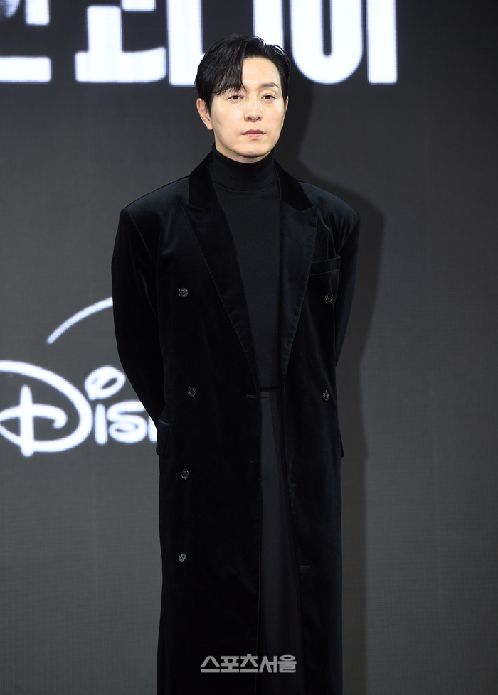 배우 정성일이 15일 서울 강남구 그랜드 인터컨티넨탈 파르나르에서 진행된 디즈니+ 오리지널 시리즈 ‘메이드 인 코리아’ 제작발표회에서 취재진을 향해 포즈를 취하고 있다.