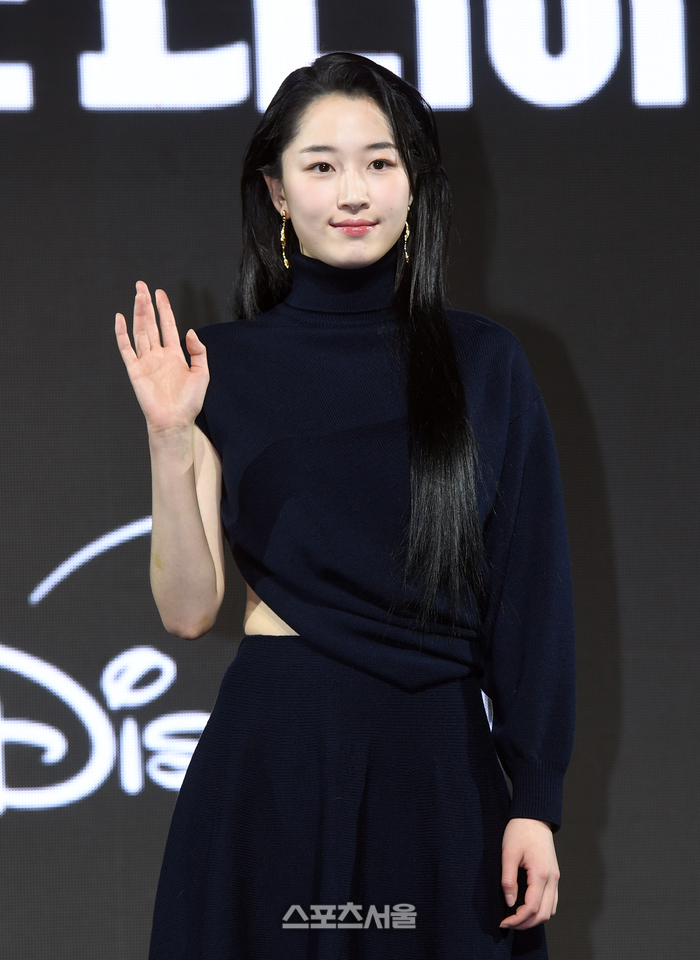 배우 원지안이 15일 서울 강남구 그랜드 인터컨티넨탈 파르나르에서 진행된 디즈니+ 오리지널 시리즈 ‘메이드 인 코리아’ 제작발표회에서 취재진을 향해 포즈를 취하고 있다.