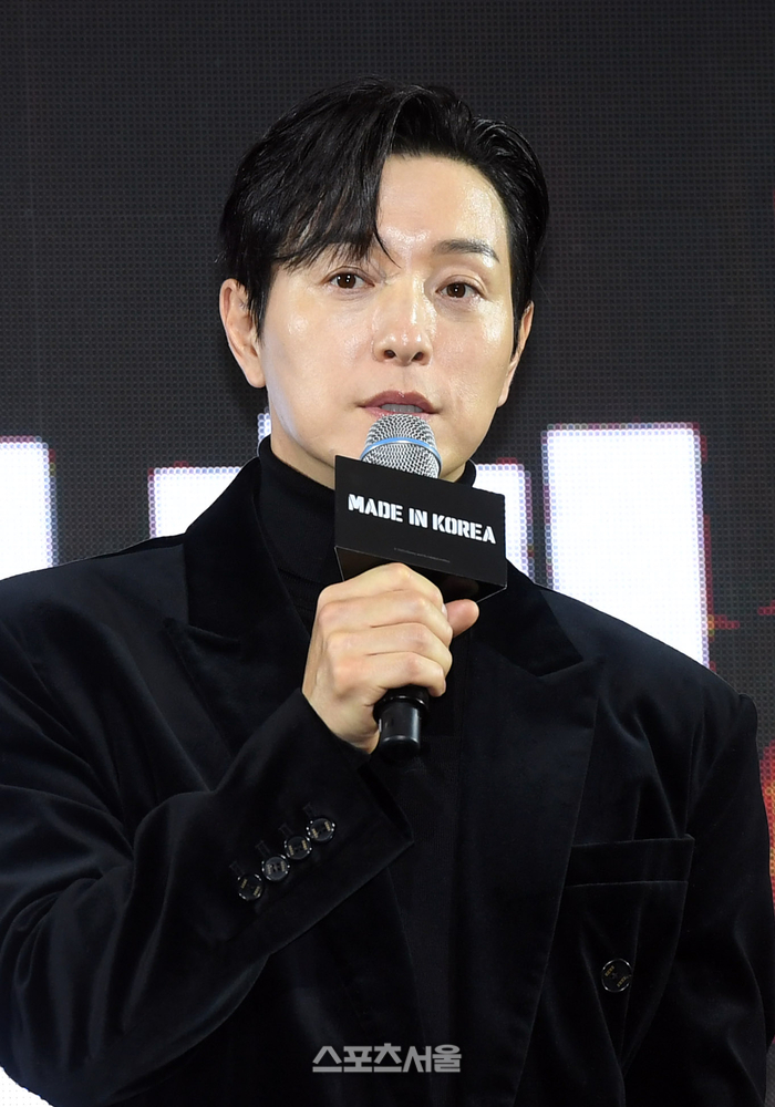 배우 정성일이 15일 서울 강남구 그랜드 인터컨티넨탈 파르나르에서 진행된 디즈니+ 오리지널 시리즈 ‘메이드 인 코리아’ 제작발표회에서 취재진의 질문에 답을 하고 있다.