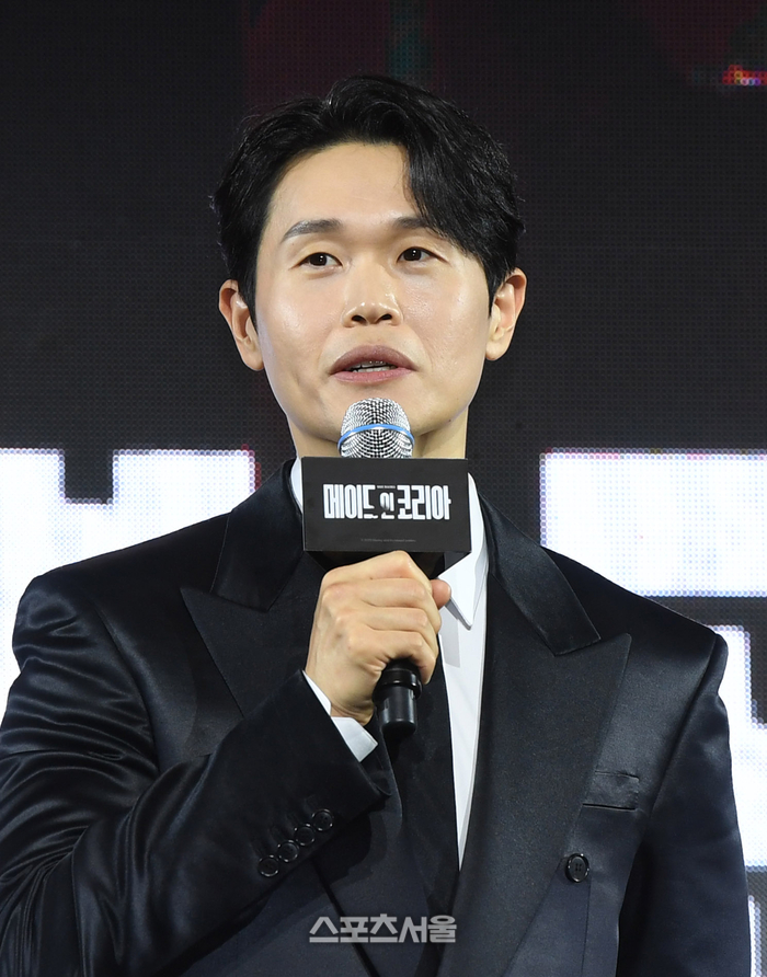 배우 강길우가 15일 서울 강남구 그랜드 인터컨티넨탈 파르나르에서 진행된 디즈니+ 오리지널 시리즈 ‘메이드 인 코리아’ 제작발표회에서 취재진의 질문에 답을 하고 있다.