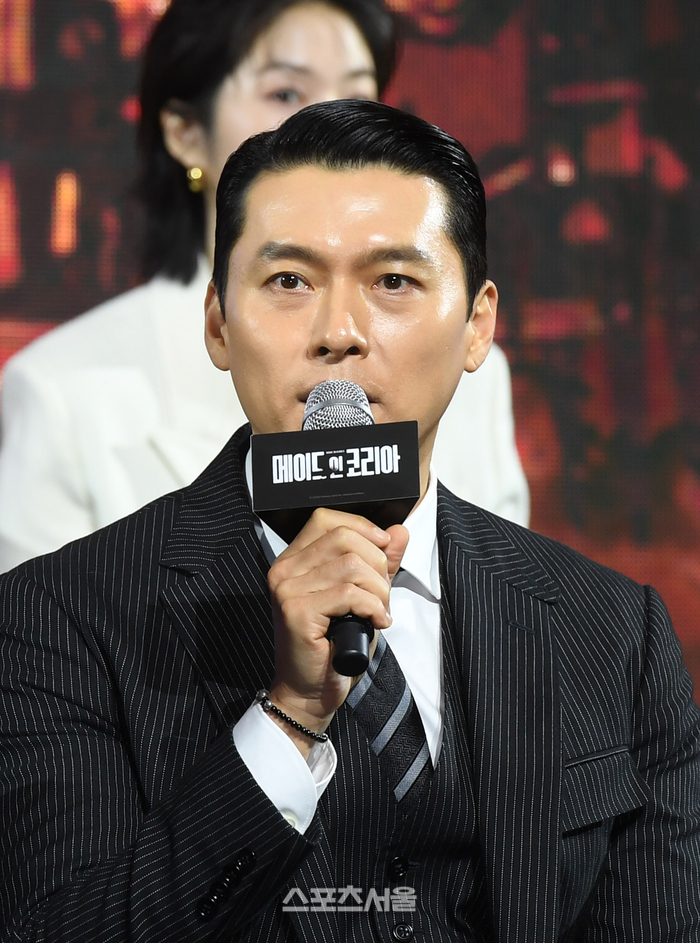 배우 현빈이 15일 서울 강남구 그랜드 인터컨티넨탈 파르나르에서 진행된 디즈니+ 오리지널 시리즈 ‘메이드 인 코리아’ 제작발표회에서 취재진의 질문에 답을 하고 있다.