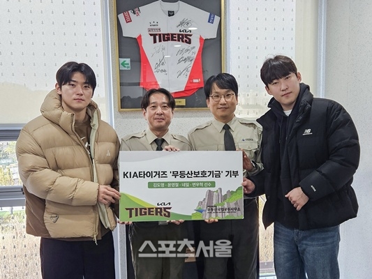 기금을 전달한 윤영철과 김도영은 “매해 연고지 광주의 상징인 무등산을 아름답게 가꾸고 보전하는 데 선수단이 힘을 보탤 수 있어 뿌듯하다.