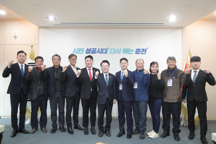 [스포츠서울ㅣ춘천=김기원기자]육동한 춘천시장은 15일 시청을 방문한 춘천JC와 대만JC 회원단을 접견하고 기념촬영을 했다.