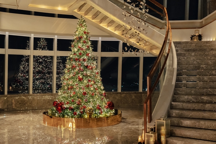화려하고 따뜻한 분위기의 크리스마스 데코레이션도 마련했다. 79층부터 81층까지 이어지는 웅장한 나선형 계단 입구에는 레드·골드·실버 컬러의 오너먼트와 크리스탈, 금빛 장식이 어우러진 크리스마스 대형 트리를 만나볼 수 있다. 낮에는 통유리창 너머 환상적인 스카이라인이, 일몰 후에는 나선형 계단을 따라 비치된 랜턴 조명과 우아한 꽃 장식이 시시각각 다채로운 분위기를 연출한다.